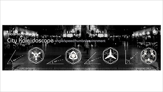 這件作品就是一個這以這樣的構想為出發,沒有任何使用介面或學習性操作,我們的行走行為就是裝置的觸發器,依照每個人行走行為中,具有個人特質的轉彎角度當作轉動萬花筒的雙手。而每個人同樣也是萬花筒裡構成最後美麗圖案的玻璃珠和碎屑。不僅參與的人數、行走的速度和角度,都會影響圖案的回饋;隨著你離開感應區,這段時間的消逝也會使你的圖示漸漸變淡、變小直至消失,而當然也會有舊的圖案消失或新的人加入,所以整個圖案的變化是持續不斷的。