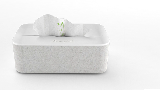 由抽出衛生紙的動作,載入新的思維,Tissue plant栽種的,是對環境的關愛,每一張由裂縫中掙脫出的衛生紙,都象徵 著幼苗生命的毅力,都承載著一次綠意的孕育。還地球一件綠衣吧!Tissue plant讓我們的地球永不竭盡。 經由裂縫的阻 力,方能抽出衛生紙的過程,企圖讓使用者體驗到,人與環境的相互關係,進而產生對綠色議題的警惕。