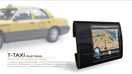 T -TAXI 行車資訊系統,藉由此產品來改善司機與乘客的溝通模式,而不受限於語言或是其他特殊情形( 如聽障者或其他言語障礙者)擴大司機所能搭載的族群類型,開拓其客源達到開源的目的。而乘客在搭乘時能同時掌握到車輛的目前所在位置和路線等資訊, 避免擔心司機繞路多收車資以及降低危險性和不安全感, 改善其溝通模式避免因溝通不良所產生的交易糾紛,達到雙贏互惠目的。