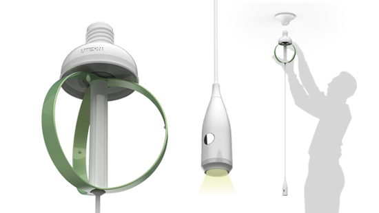 作品名稱: Wind Bulb Wind Bulb 是一風力發電的LED公寓陽台燈具。以垂直軸風力發電機為發電方式,並在產品外形及構造上結合省電燈泡的意象。因此Wind Bulb可安裝於天花板上現有的燈泡座中。風力發電機所產生的電力,可驅動設置於發電機下方的LED燈,提供公寓陽台的夜間照明。 Wind Bulb是利用風能的獨立照明系統,主要使用情境是都會區公寓的陽台。擷取高空中較穩定的風能,作為陽台夜間照明的電力來源,進而達到節能減碳的效益。