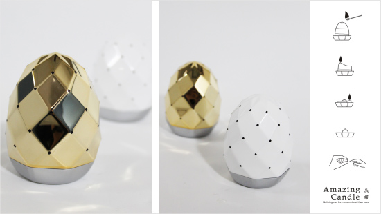 示愛是人最根本的天性。人們往往點燃蠟燭來增加浪漫的氣氛,製造生活中的情趣。AMAZING CRADLE 是一個與眾不同示愛的設計。等待中空的蠟燭以螺旋的方式燃燒完後,出現的是精心準備的求愛戒指,這絕對會是雙方記憶深刻的經驗與禮物! 最後,包裝還能成為最特別的珠寶盒。 Pursuing love is the most natural instinct for human beings. Nowadays candles are often used to promote the romantic atmosphere in the situations of dinner, marriage proposal, and so on. AMAZING CRADLE is a special and unique candle. It would be a very impressive experience when the engagement ring appears from the hollow candle. At long last, the packing box can function as the most special jewel case. ---------------------------------------------------------------------------------------------------------- Nothing can be more natural than love. To love, we always need some tools like candle dinners, flowers, slow love songs, even wedding rings to stimulate our emotions, affections. Amazing Candle is the latest product that we design for you who is pursuiting love and being unique; in our product, there is a engagement ring shown up when the hollow candle burns down; this would definitly make you a remarkable experience. Also, the package can be a exclusive jewelry collector as well.
