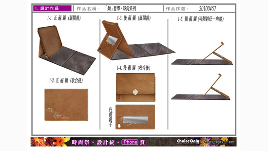 在教育普及、文化薰陶和時尚風潮引領下,現代人越來越重視產品時尚與品味。而iPhone 4手機套 「傾」哲學。時尚系列,正如同「傾」字所傳達的意象-有魅力之意,讓使用者為它「為之傾倒」;另一含意就是,以「傾斜」作為產品最主要的特色與賣點,因為許多使用iPhone 4 的人,一定會遇到的困擾就是,用手機來看電影或看電視時相當不便,因為總要將手機靠於某物上,來達到傾斜的目的,此外依據調查,市面上的手機套大都沒有特別針對這一部分加以設計,因此,這款『「傾」哲學。時尚系列』正好可以解決這一惱人問題,更重要的是,使用者可依其需求,「任意」調整手機的傾斜程度,來達到最佳觀賞角度。