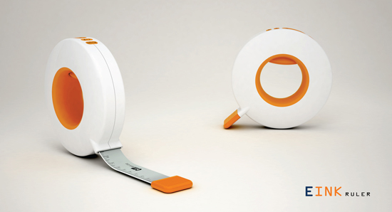 E-ink Ruler 電子等分尺 There are two main measuring units in the world: Metric and Imperial Units. Those two systems are totally different. Calculating the units is quite a handful. Based on this problem, we create a very convenient product called E-ink Ruler. There are four major features of E-ink Ruler. First, E-ink Ruler can change the unit immediately when consumers use it. Second, consumers can estimate the length of anything quickly. Third, it is very easy to divide a length into equal parts by adjusting E-ink Ruler’s Divide Button. Fourth, when it is circulated around a cylinder object, it can calculate the diameter and radius automatically. 電子等分尺能迅速變換公分與英吋等單位,讓使用者不用花時間換算,而外型中空的設計有別於傳統實心笨重的外觀,讓使用者更好握拿,進而增加工作效率。