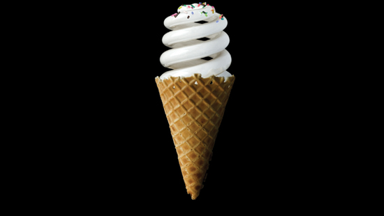 全球暖化使得地球比以前更加炎熱,近幾年全球平均上升攝氏兩度,事實上有很多種方法能改善現在這個狀況,其中一項方法就是選用符合經濟效應的省電燈泡,它能減少溫室氣體的總量史地球更加涼爽,就好像給地球吃冰淇淋。