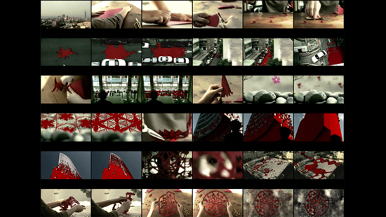 Paper-cutting is a tradition art in Chinese culture. It was very popular in the past. In this short film, the cutting-magician used her paper-cutting to embellish the whole city. The street was conjunction with red paper and the buildings were covered by paper. The growing red pattern represented a new vitality of paper-cutting art.