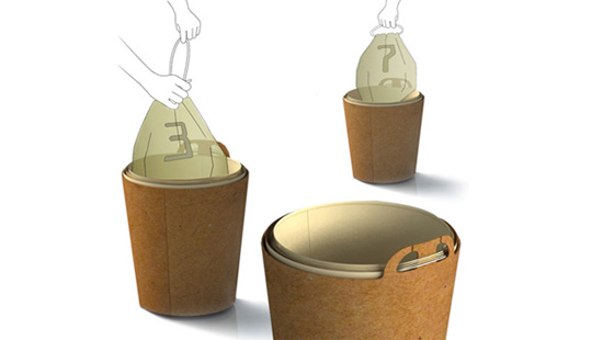 Say hi to a new environmental-friendly and user-friendly trash can! Normally, we use plastic bags to pack the trash and replace the dirty ones with new bags. It’s not only unfriendly to the environment but also inconvenient for using. This is a trashcan and also a trash bag which made of a pile of waterproof reprocessed paper. After the upper paper bag is full, the user can directly wrap it and throw it away and then another clean bag is available for use the next time without any further movement. Every trash bag will show the number of how much bags you already used. It reminds users to reduce waste.