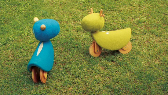 新型態的兒童遊樂車,藉由三輪、兩輪的轉換能依據孩子的需求做調整。而木頭與羊毛氈結合的車體更帶給孩子不同於冰冷鐵馬的溫暖感受。