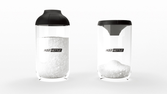 In Out Bottle In Out Bottle is a very convenient product. It is easy to pour and refill sugar in the bottle. In addition, the cover of the bottle is made of silica gel which can be changed shape simply. For example, when consumers want to refill the bottle again, they just press the silica gel cover down and pour sugar. The funnel shape cover can prevent spill of the sugar. This tiny change can make our life more comfortable.