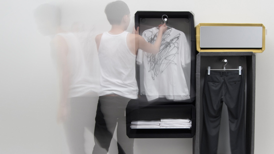 Clothing Frame顛覆了傳統占據空間而笨重的大型衣櫥、並改變我們對於衣物家具的使用習慣。 我們以模組化的方式將衣櫥內的品項分割,讓使用者可以挑選所需尺寸、顏色自由的搭配及擴充,更進一步利用牆面可橫向發展的空間,打造專屬於自己的Clothing Frame。 外觀上我們將牆面裝飾的概念融入設計,Clothing Frame看似許多幾何大小不一的方框,展示了每件衣物上的不同的圖樣款式,就如同畫作一般,賦予衣物家具收納以外的樂趣。操作方式也利用了材質本身的特性,改以直覺的輕推遮罩後拿取,讓使用者感受有別於以往的新體驗。 Clothing Frame subverts traditional large closet which is heavy and takes up space and changes our patterns of use for clothing furniture. We use modularized design to divide the items in the closet. Users can combine the size and color they like and expand the closet. The horizontal space on the wall that can be expanded is used to create a personalized Clothing Frame. In terms of the external appearance, the concept of wall decoration is included in the design. Clothing Frame looks like many square frames in different sizes. It shows the pattern and style of each different clothes, which is like painting, and adds the fun to clothing furniture other than storing. The ways of using Clothing Frame is closely related to the characteristic of its material. Users only have to lightly push the cover and take out what is needed. It gives the user a new experience that is different than before.