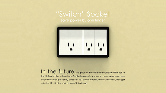 這個設計結合了插座與開關,讓使用者用一根手指頭,就可以將不需要用的電源完全地關閉,既不會讓電器用品因為燈號或其他因素持續的浪費電,也讓插頭清爽地留在牆上,而非散落在地上,既環保、又容易使用。