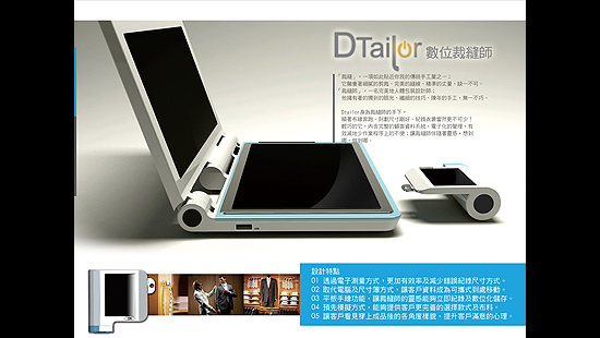 Dtailor身為裁縫師的手下, 順著布緣奔跑、刻劃尺寸剛好、紀錄衣裳當然更不可少! 輕巧的它,內含完整的顧客資料系統,電子化的管理,有效減地少作業程序上的不便;讓裁縫師伴隨著靈感,想到哪,做到哪。