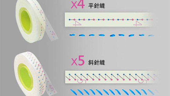 縫紉帶將各種縫紉針法印刷於半透明膠帶上,可作為學習縫紉者的輔助工具,使用者只需要依照膠帶上的圖示進行縫紉的動作,完成縫紉後撕下膠帶即可獲得整齊的縫線
