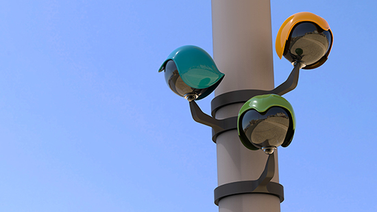 and with curved and round shaped so when it is hanged in a street corner, it is like a bird in a tree.