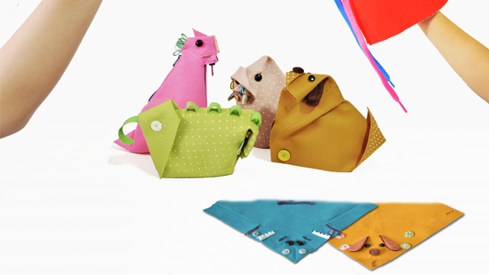 Using a cloth designed with buttons; zippers; shoelace and belt-like strap, the kid can learn and play by assembling it into an animal puppet.