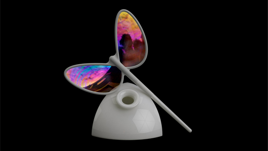 作品將芳香劑以泡泡水的形式呈現,運用材質的結合,讓一向靜態的瓷器有了動態的變化。使用過