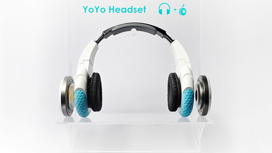 這是一款藍芽耳機的設計,於耳機的左右兩側配置了溜溜球的發電與電池模組,可組合做為一般溜溜