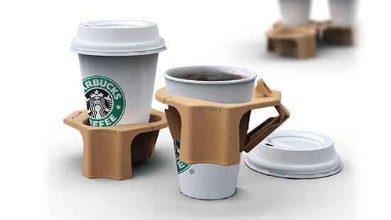 的資源的浪費。CUP TAKER 將杯墊杯套結合再一起,在購買時為乘裝的杯墊,要飲用時只要