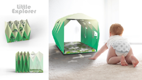 Little Explorer是一組能節省空間的摺疊玩具,以獨特的摺疊方式與環保的紙材,方便延伸與收闔,作不同尺寸的模組與遊戲方式. 展開後的玩具可以投射出動物的光影、具熱感應塗料的地墊可在接觸時有不同圖樣顯現、玩具上的圖樣促使兒童主動進一步學習其意義. Little Explorer增加了兒童遊戲的空間使用效率,多樣性的遊戲功能與可回收的材料也解決了環保的問題.