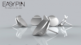 為圖釘改良設計,解決傳統圖釘在使用時往往都會破壞紙張或照片,造成不美觀,且在拿取及拔起的時候也較困難。將夾子與圖釘結合,使用者只要將紙張夾於圖釘後側及可避免刺穿紙張,兩側斜面讓使用者好拿取及拔起圖釘,使用者只需要抽換即能更換紙張,不用像傳統圖釘需要將圖釘拔下在插上。斜面設計也能夠讓圖釘平穩放置桌面,不會滾動掉落,造成使用上的不便。
