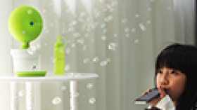 Bubble . Bubble為1到7歲成長的小孩設計。父母與小孩的視訊過中,只要對著手機上的麥克風(本身手機都有內建聲音偵測辨識系統)吹氣,便可隨時傳送泡泡。小孩透過戳泡泡行為或其它動作跟泡泡產生互動,Bubble . Bubble 感測後,便會發出音效,讓小孩驚喜與歡樂。