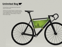 Unlimited Bag is a specialized bicycle bag which hang on bicycle frame. It's buildup by flexible and soft cloth which user can easy pull in and take out stuff in that. Flexible cloth structure can press from both sides and all stuffs will be holding on the middle of a bicycle for good cycling balance. Another Interesting feature of flexible cloth is that Unlimited Bag will be form by different stuffs in it.