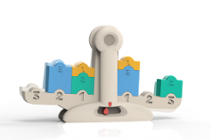 123 Balance teaches children the mathematical concept of weight and balance while cultivating their reasoning abilities and problemsolving skills. Adding and combining various lever arms with three types of blocks (in different multiples of weight) produces multiple ways to play. The shape of the bricks is designed to be stacked quickly and intuitively. If the blocks on both sides weigh the same, the upper and lower pointers align, and the game produces a sound to provoke a sense of accomplishment.