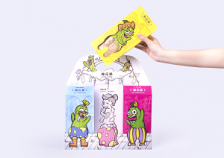 整體包裝設計成一個家,三款絲瓜絡角色分別在廚房、浴室、書房,