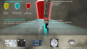 WORKER SPACE is a smart spray water mist system that improves the health and serious impact of high dust concentration. It can spray fine water mist at high altitude, which can reduce dust amount, lower temperature, generate convection, improve air pollution and heatstroke of staffs, and reduce the chance of explosion. Users can use the grips and wheels to transport water supply for unit configuration and build a spray dust-proof net. By environment detection, AI calculation, mobile device APP, real-time monitoring and adjustment configuration, it can save water and improve efficiency.
