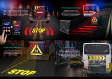 SCROLL-X combines a flexible light guide, electronic paper display, and laser projection technology to reduce the risk of placing an emergency stop sign when a vehicle breaks down during daytime or night time. The reel design can be installed in the trunk, allowing users to quickly open the Scroll-X after opening the trunk, and it automatically activates the enlarged vehicle breakdown message; combining with the projection of laser dynamic lane shifting indication several meters behind the breakdown vehicle. The approaching cars can clearly identify the warning from a distance to improve the chance of high-speed collision when the night visibility is poor. SCROLL-X can be used with mobile device APP and all kinds of hooking and standing accessories, which is widely used for temporary stop of bus and ambulance, police car pull-over stop, road construction and cleaning, etc. With the driving lens, the front view of the large vehicle can be displayed for the approaching cars to let the approaching vehicles know the condition of the preceding vehicle.