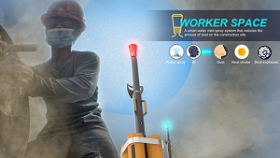 WORKER SPACE是為了改善施工現場粉塵濃度過高影響人員健康與造成生命危險,所設計的智能噴灑細水霧系統。WORKER SPACE可在粉塵濃度過高的區域進行高空噴灑細水霧,運用高壓細水霧的特性有效減少粉塵含量、降低溫度與產生對流,改善施工現場的空氣汙染與人員中暑現象,並降低發生塵爆的機率。使用者可透過WORKER SPACE上的握把與輪子進行搬運補水及單位配置,為施工現場建立噴霧防塵網:透過環境偵測、AI運算、行動裝置APP可即時監控與調整配置,減少水資源的浪費與提高系統之間的運作效率。