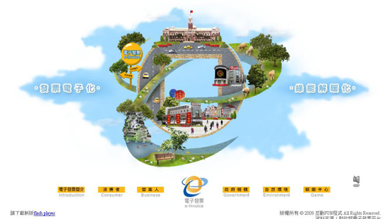 作品簡介 以財政部電子發票的LOGO發想出一個「電子發票地球」,藉由拼貼影像與向量圖檔的設計,將電子發票的資訊以小動畫等互動方式呈現,詳細介紹電子發票對消費者、商家及環境保護的便利與重要性,讓瀏覽者藉由網頁的互動,了解電子發票的作法與環境保護的重要性。