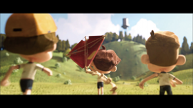On a windy afternoon, three kids skipped their graduation ceremony and ran into a sloping and lush hillside to fly a kite, which was left by their other friend that had just moved away. On the hill, a strange gale swayed their kite and accidently stuck it into the top of the abandoned water tower standing alone on the meadow.