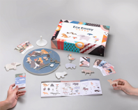 EcoEnvoy是一款結合益智拼圖和平衡遊戲的生態系教具,孩童透過動物益智拼圖了解生態系的概念,過程中慢慢構築出完整的生態系,了解到生態系中的任何物種都是缺一不可的;另外平衡遊戲中搭配環境事件卡,讓孩童能從中學習生態多樣性,平衡過程中也能了解生態系平衡的觀念,兩種遊戲模式不僅提升環保意識也增加國際觀,讓孩童從小培養正向的生態保育觀念。