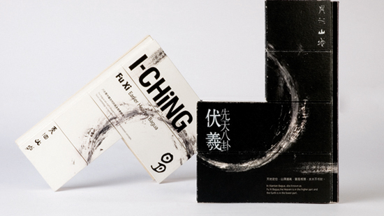 不同於現在常見的周易,本書採用先天八卦的順序,以乾坤為初始,分成陰陽兩冊,有系統的編列整理易經的不同體系。封面的的形狀有兩種拼湊方式,象徵易經天圓地方兩個順序系統,讀者可以自行歸納其中的邏輯趣味。