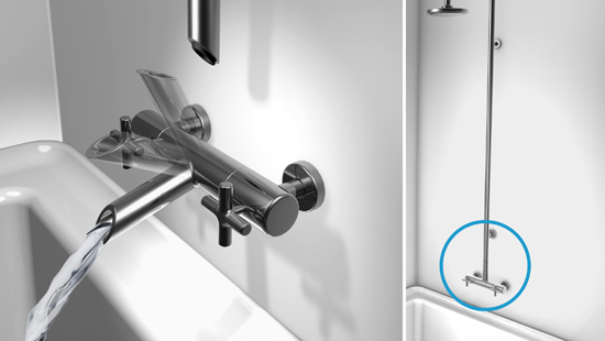 SO WATER Sanitaryware Most of people have the experiences of using the shower apparatus when they need to supply water or wash something.And they have also have the problems of being splashed all over by water when they forget to switch the shower nozzle over to the hydrant. The objective of this plan is to design the shower apparatus to combine the new style of faucet with its operation. Turn down to the location when you want to use the hydrant; Turn up and connect the drainpipe of the shower nozzle when you want to take a shower. The motivation of this design is to guide the users by changing their vision and operating